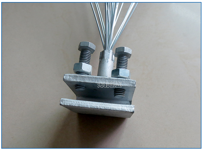 6、驅鳥刺固定線夾加緊處開口不小于12mm,冷拔鋼絲與底座連接牢靠。