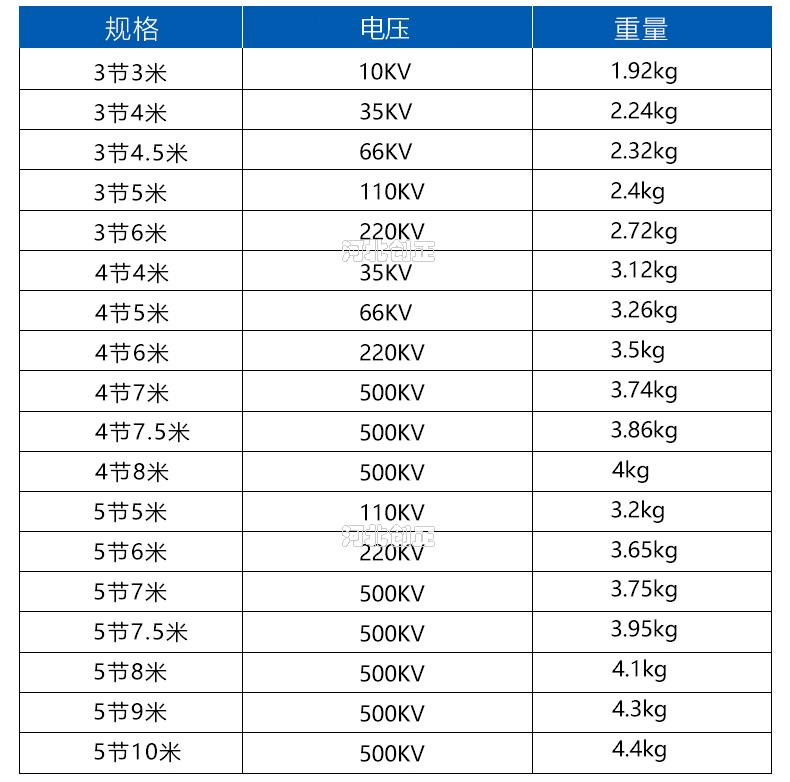 1、絕緣桿:采用絕緣性能及機械強度強、重量輕、經防潮處理的環氧樹脂管制成。