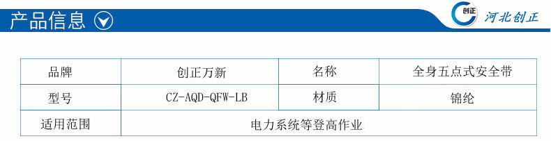 產(chǎn)品名稱:藍(lán)色全身五點(diǎn)式大鉤安全帶