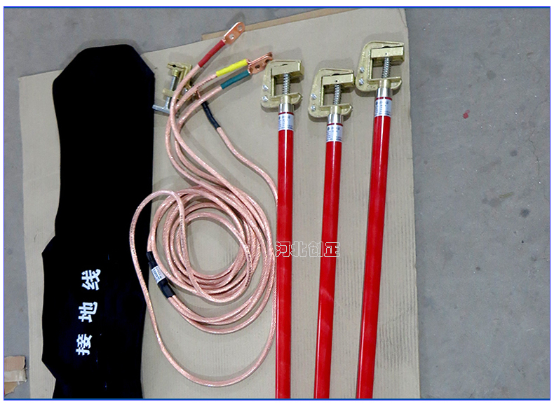 (2)、安裝:將接地軟銅線和接線端子固定在接地棒上的接電夾的相應(yīng)位置上,將接地線尾線的接線端子固定在接地夾或地針上,構(gòu)成一套完整的接地線。