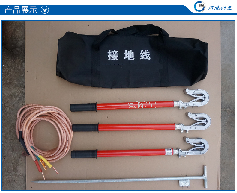 4)接地軟銅線有分相式和合相式,接地棒有圓口式和雙簧式。